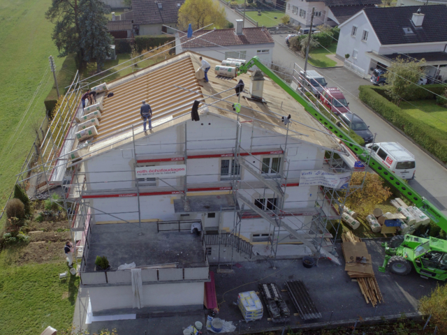 Nous sommes en mesure de réaliser tous types de rénovation de toiture de la plus simple (toiture 2 pans) à la plus complexe comprenant les travaux de démontage, réparation de la charpente, isolation de la toiture, nouvelle couverture en tuiles ou en éternit et ferblanterie.